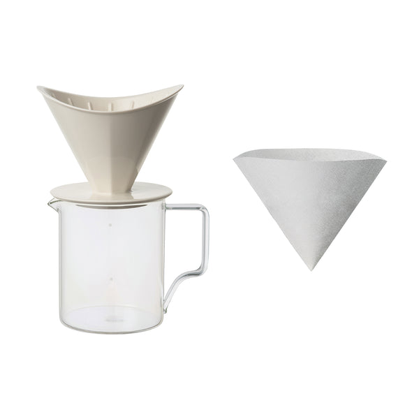 八角形をベースに構成されたOCT。シャープなラインが印象的でありながら、使い心地の良さにこだわった見えないディテールの詰まったデザイン。大きなカーブを描いた縁のシルエットが特徴的なブリューワーは、ハンドルがなくても持ちやすく、ペーパーフィルターの取り外しがしやすいよう設計されています。カップとジャグのハンドルはシャープな印象でありながら持ちやすく、カップの口縁は薄く口当たりの良い仕上げ。上質な質感とほどよい緊張感のあるフォルムで、使わないときもディスプレイしておきたくなる佇まいです。