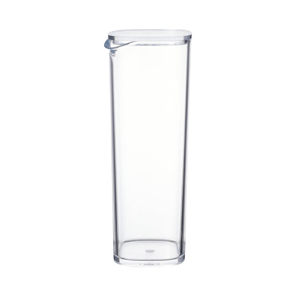 極めてシンプルで、品位ある佇まいのOVA。蓋とボディの2つのパーツのみで構成されており、片手で楽に注げるように使い心地を計算しつくしたデザインです。樹脂製のやわらかな四角形のフォルムは手に馴染み、ハンドルがなくても心地よく注げる設計。蓋はボディにぴったりとはまり、傾けても落ちにくくなっています。注ぎ口はすっきりとしたラインで、液だれしにくく、ドリンクがスムーズに流れます。